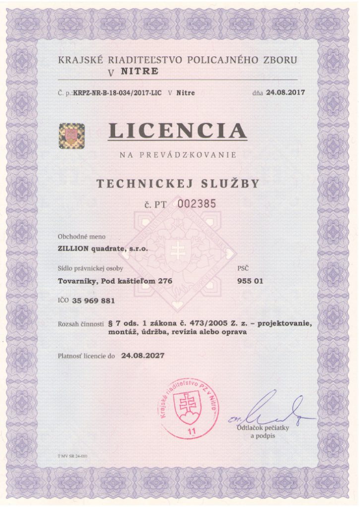 Získajte 24 hodinový prehľad o sledovanom objekte a jeho okolí. Správne nastavenie a umiestnenie kamier vám pomôže udržať váš majetok v bezpečí. V našom portfóliu nájdete najmodernejšie kamerové riešenia HikVision a AXIS. Pre ich dodávku a montáž sme licencovaní Ministerstvom vnútra SR.
